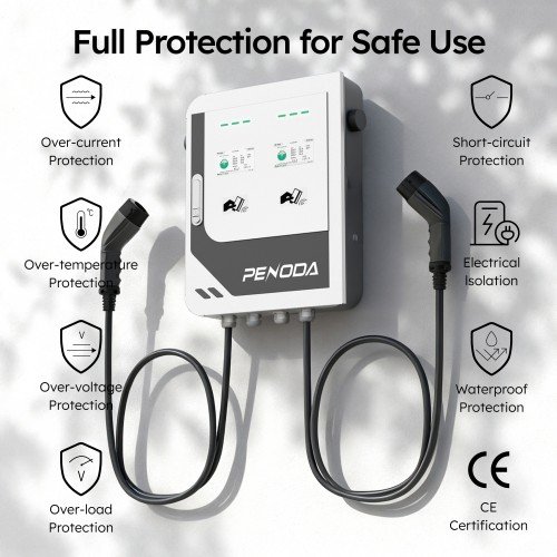 Engineered with a comprehensive protection suite—including leakage, overvoltage, over-temperature, and lightning safeguards—our stations provide a fortress of safety for your vehicle. Combined with an IP55-rated waterproof design, PENODA chargers ensure a secure and reliable charging experience in any environment, giving you absolute peace of mind.